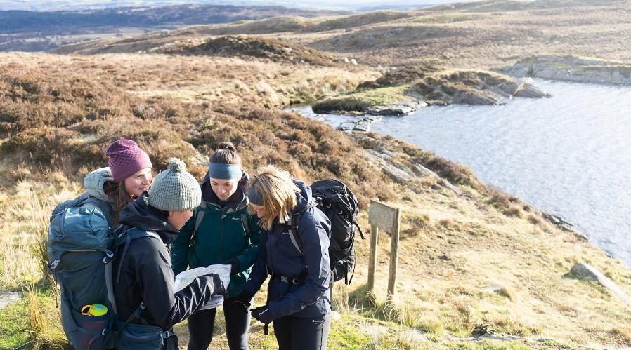 Photo: #TeamMontane’s Katy Parrott, Jessie Leong, Kat Roberts and Grace Shephard at Snowdonia National Park